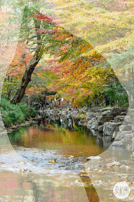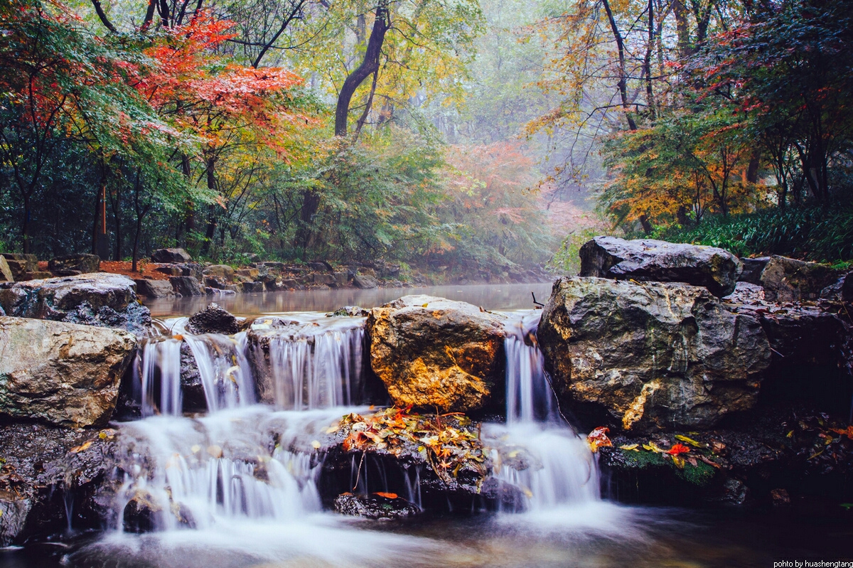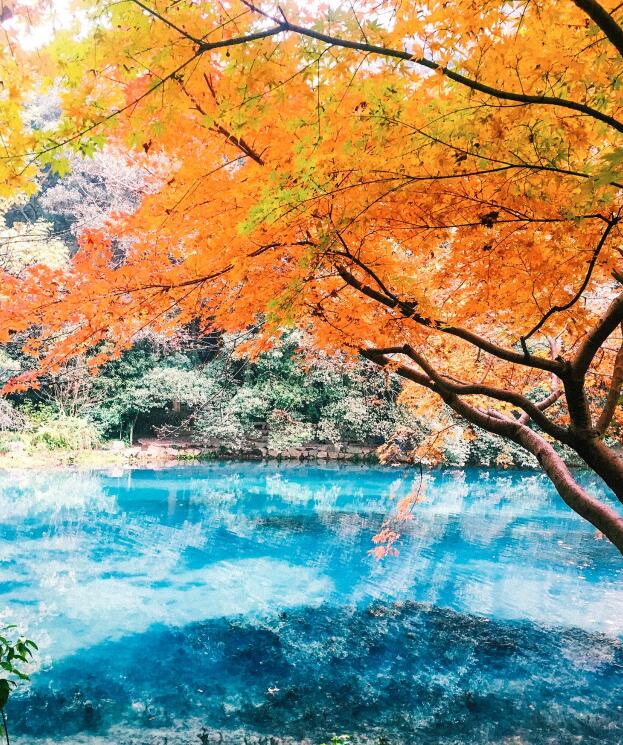 九溪秋季五彩斑斓的树叶,红黄绿像是调色板,完全看不够。溪水淙淙,山鸟啼鸣,云雾缥缈,宛如仙境。然九溪烟树的标志性景观就是屹立在湖中的枫树,每年从十月底开始便会逐渐形成红黄绿交接的绚丽色彩。或许赏枫最美的一面并非只有簇拥的好色,这样层次感十足的颜色才更是显现了秋天的珍贵。