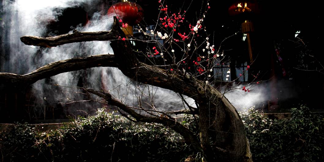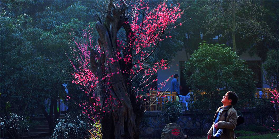 唐梅距今已有一千三百多年历史,虽饱经风霜,仍傲然挺立,岁岁作花;800多年的宋梅,则傲骨凌霜,吐露寒香。