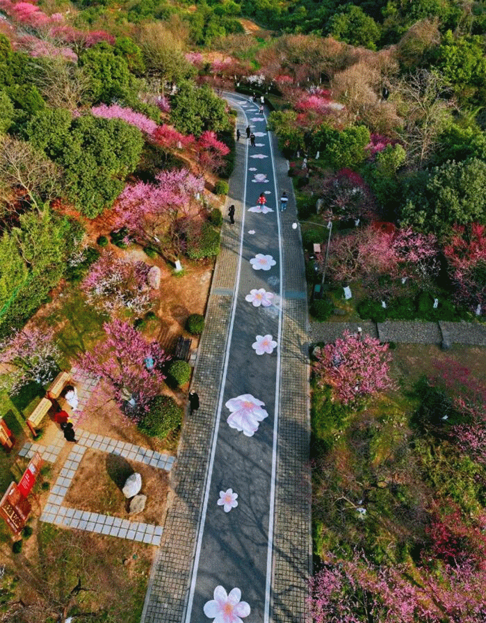 二月中旬是超山梅花的最佳观赏期,试想融化在百亩花海中,再搭配江南园林建筑,漫步曲径幽深的花间小道,在三两步间便已沉醉不已。
